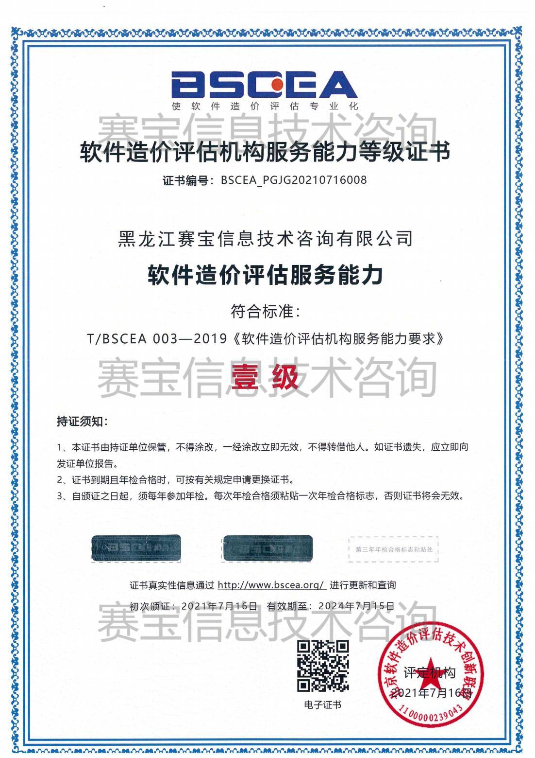 軟件造價評估服務(wù)能力壹級資質(zhì)
